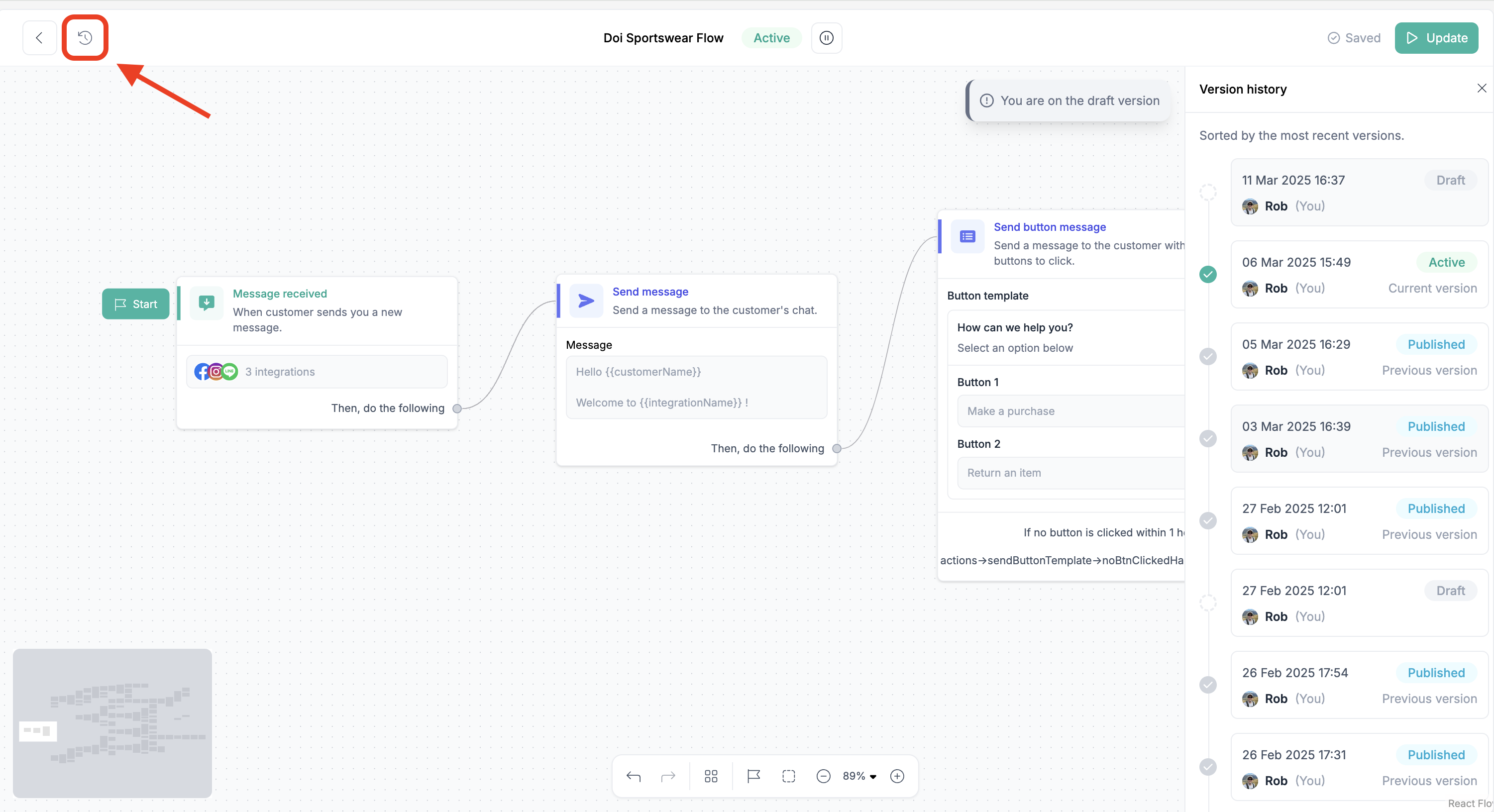 * Click **“Tidy up”** in the navigation bar to organize your flow visually in a single click.