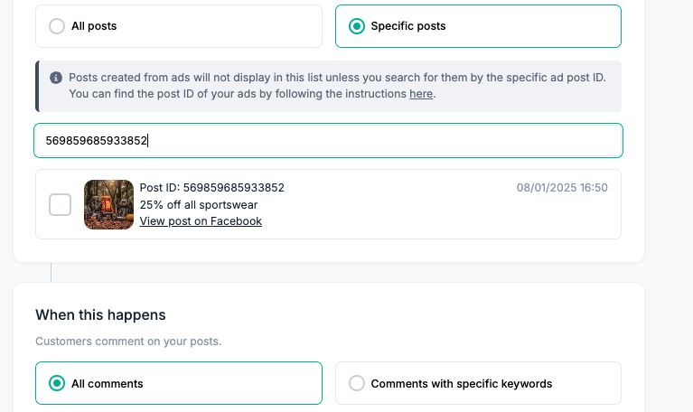 ตอบคอมเมนต์อัตโนมัติบน Facebook/Instagram
