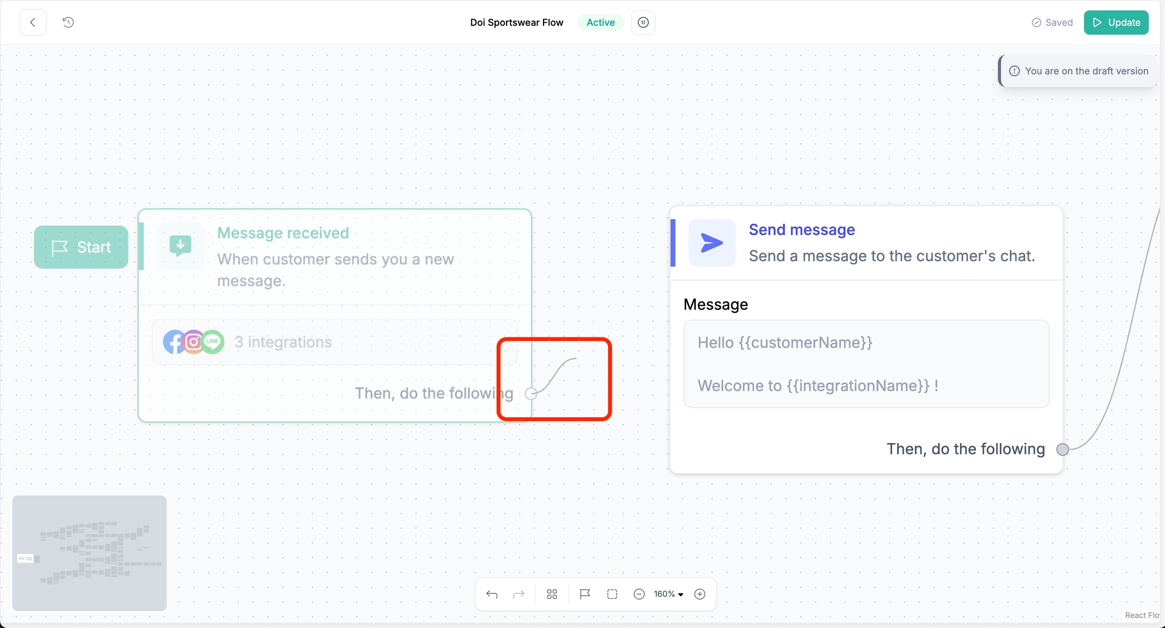 เปลี่ยนชื่อโหนดได้โดยคลิกที่โหนดและกดไอคอนดินสอ (การตั้งชื่อเฉพาะเจาะจงจะช่วยให้ทีมเข้าใจการทำงานของ Flow ได้ง่ายขึ้น)