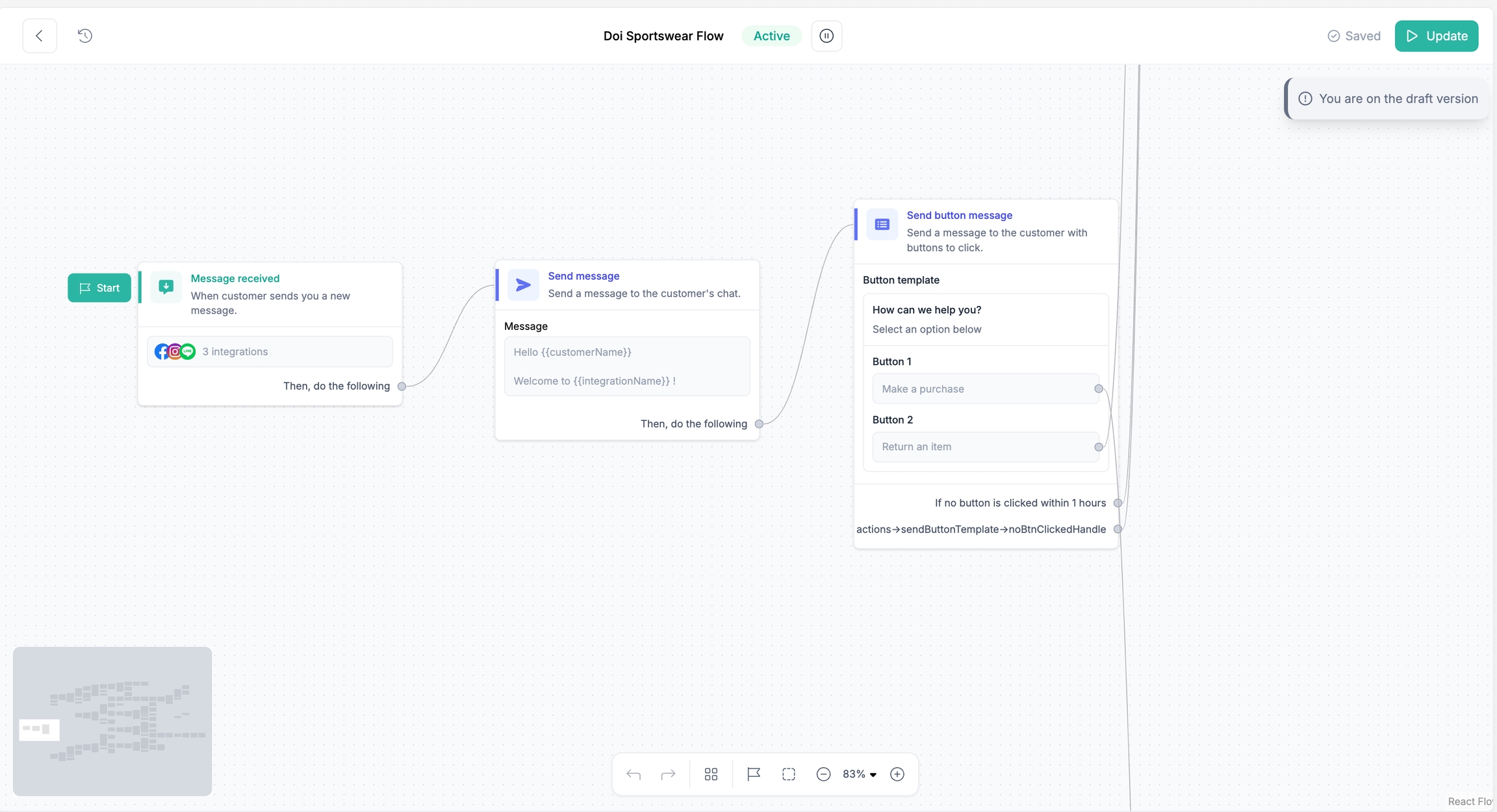คลิก Tidy Up ในแถบเครื่องมือด้านบนเพื่อจัดโครงสร้าง Flow ให้อยู่ในแนวเรียงอัตโนมัติ