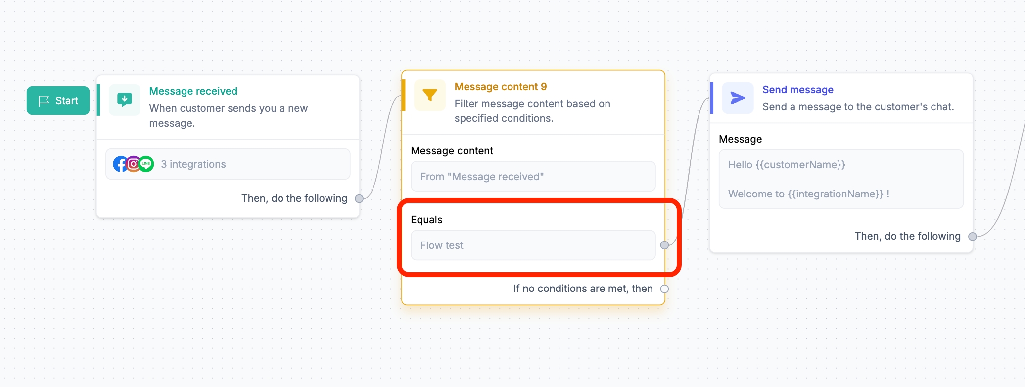 เปิดใช้งาน Flow และส่งข้อความคำหลักนั้นจากช่องทางที่เลือก