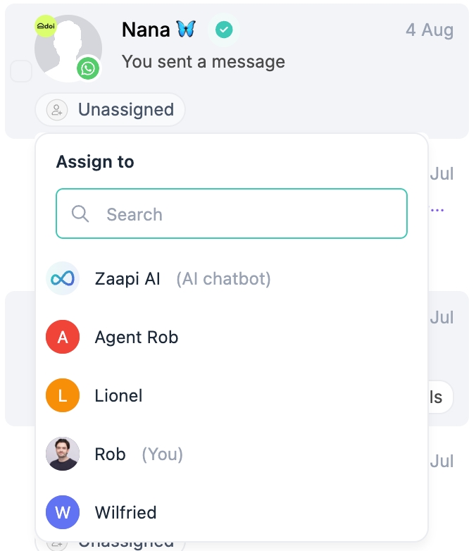 เพื่อให้การตอบกลับลูกค้าเป็นไปอย่างรวดเร็วและมีระบบ ทีมผู้ดูแล (Admin Team) จำเป็นต้องทำงานร่วมกันอย่างมีประสิทธิภาพ เมื่อคุณเพิ่มสมาชิกใหม่เข้าทีมในบัญชี Zaapi คุณสามารถมอบหมายการสนทนาให้พวกเขารับผิดชอบโดยตรงได้