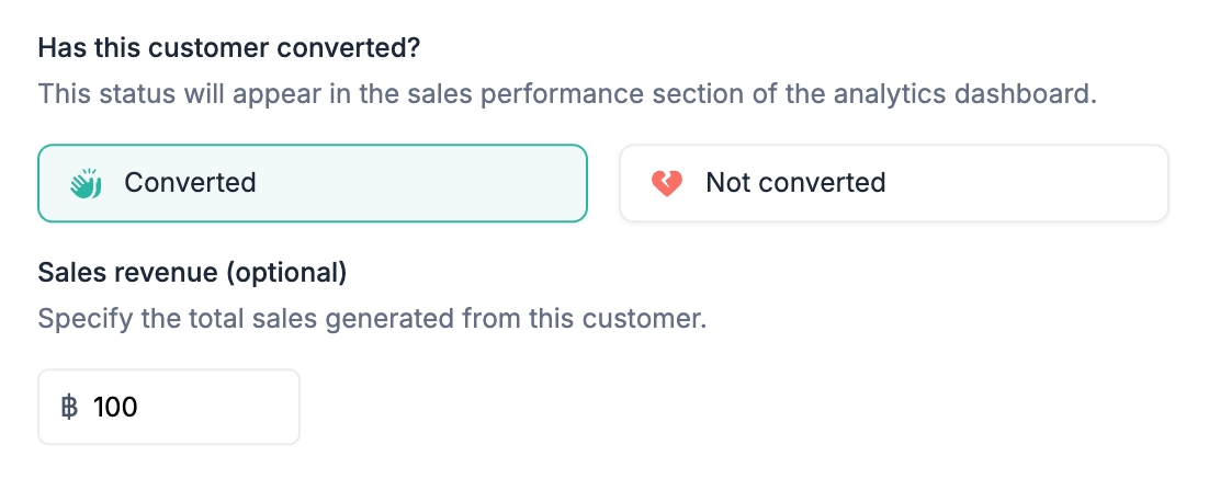 เลือก Converted และ (ถ้าต้องการ) ใส่จำนวนยอดใช้จ่ายของลูกค้า