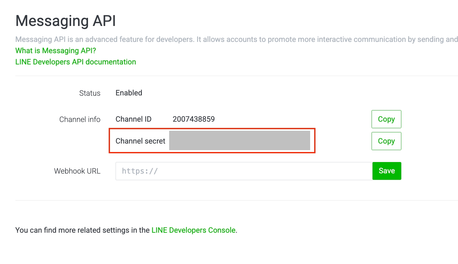 คุณต้องเอา (ความลับ Channel) จาก LINE Official Account ของคุณ และเอา Channel Access token จาก LINE Developers Console - อย่าลืมตรวจสอบว่าคุณสามารถเข้าถึงรหัสเหล่านี้ได้