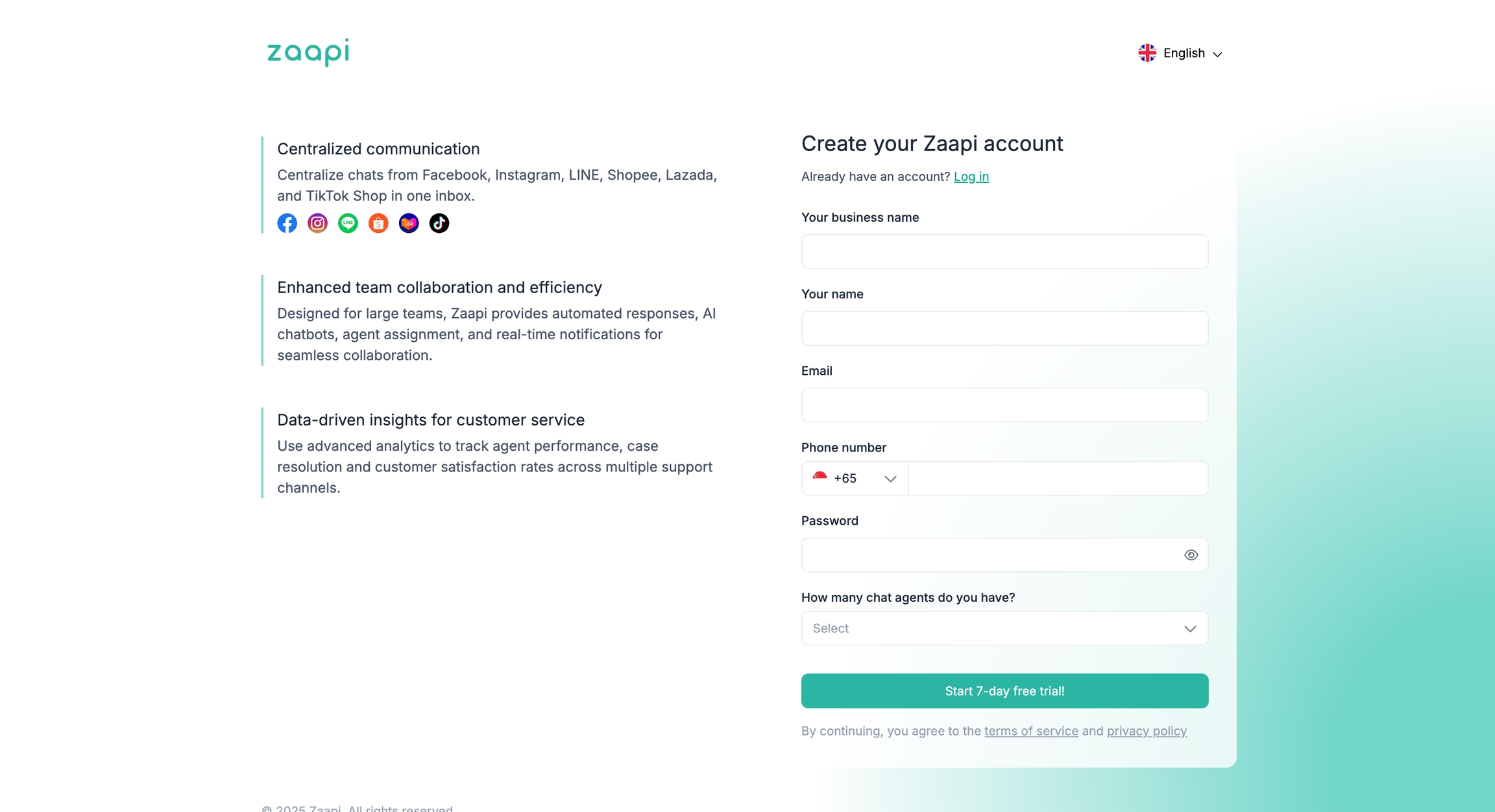 ณ จุดนี้ การทดลองใช้ฟรี 7 วันของคุณจะเริ่มต้นขึ้น ในช่วงเวลานี้ คุณจะสามารถเข้าถึงฟังก์ชันทั้งหมดที่ Zaapi มีให้ได้อย่างเต็มที่